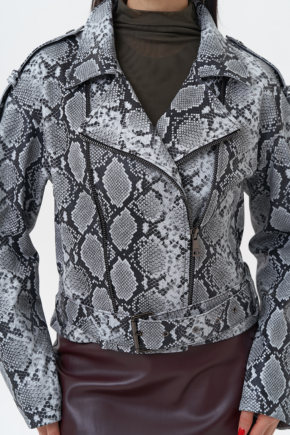 Для жителей Балашихи у нас действует беспроцентная рассрочка и кредит на выбранный товар — Кожаная куртка со змеиным принтом артикул balasiha4445. Если у вас остались вопросы напишите или позвоните нам, и мы на них ответим.