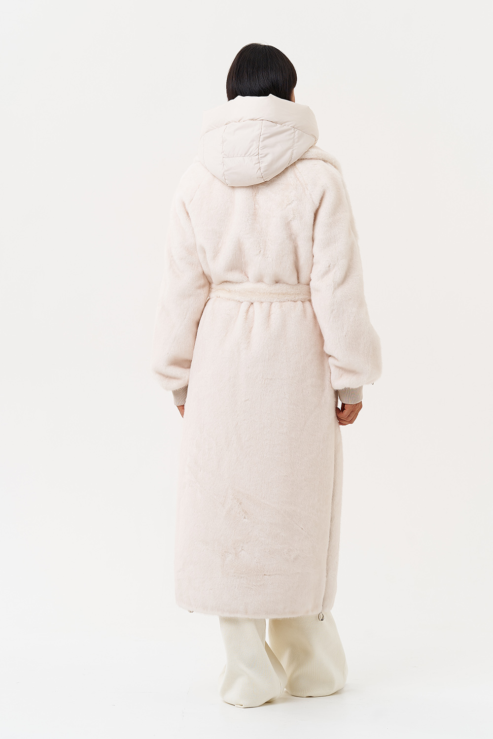 Фасон - прямой Длина изделия - 120 см Цвет - светло-бежевый (молочный) Материал - экомех Состав полотна - полиэстер 100% Подкладка - полиэстер 100% Вид застежки - крючки, пояс Вид ворота - съёмный капюшон, английский воротник Фасон рукава - реглан, длинный |